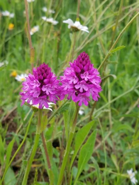 We look forward to spotting these delicate Pyramidal Orchids in the meadows.