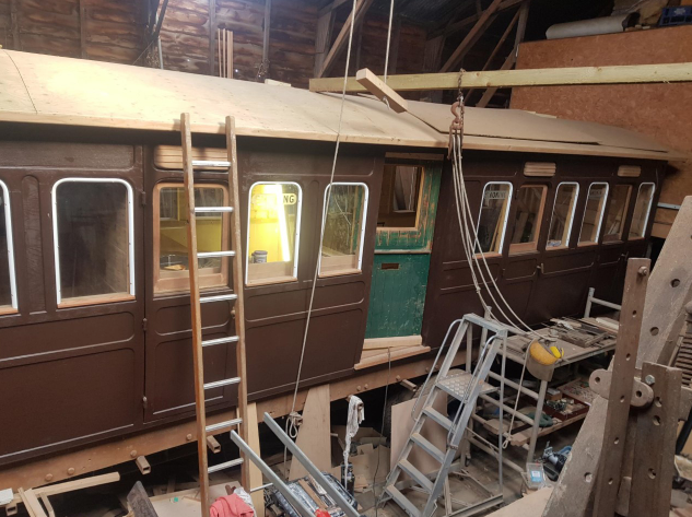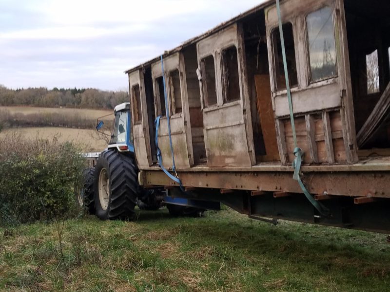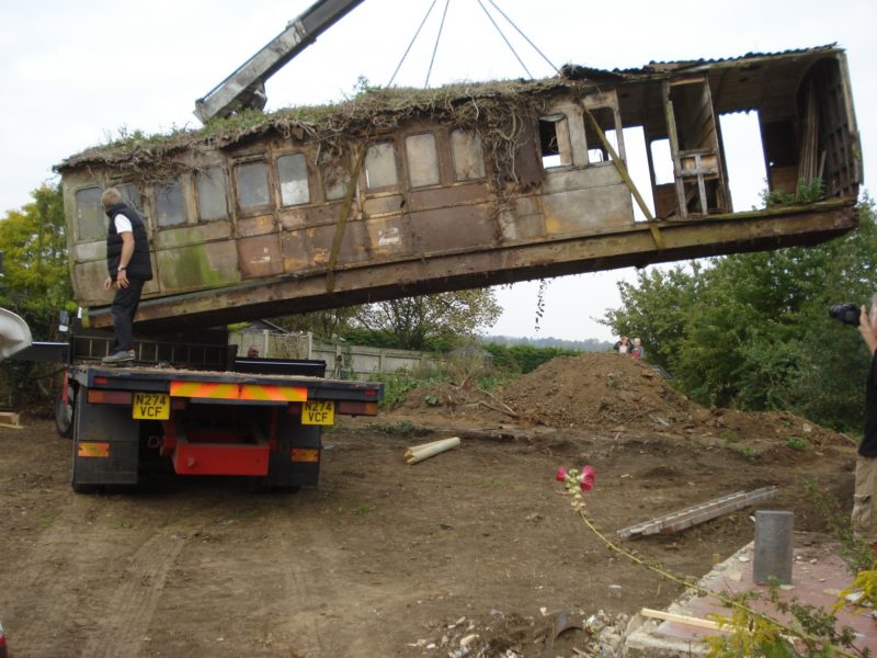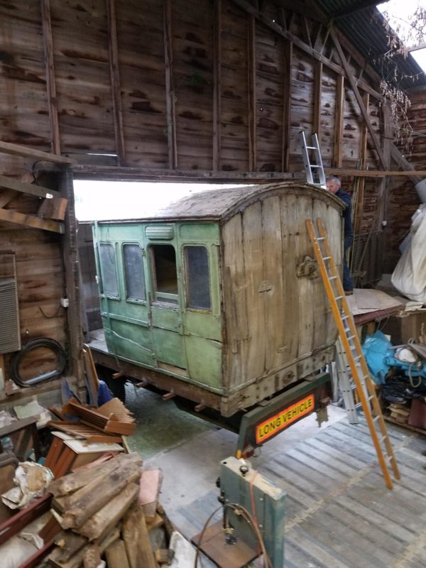 An 1880s second class Victorian railway carriage was once used as an air-raid shelter in WWII. Thereafter left in Maudie’s garden providing home to rabbits and occupied by chickens!