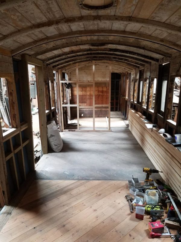 Now in our workshop undergoing careful restoration, Maudie’s Carriage will eventually sleep 4 (+ 1 small one).
